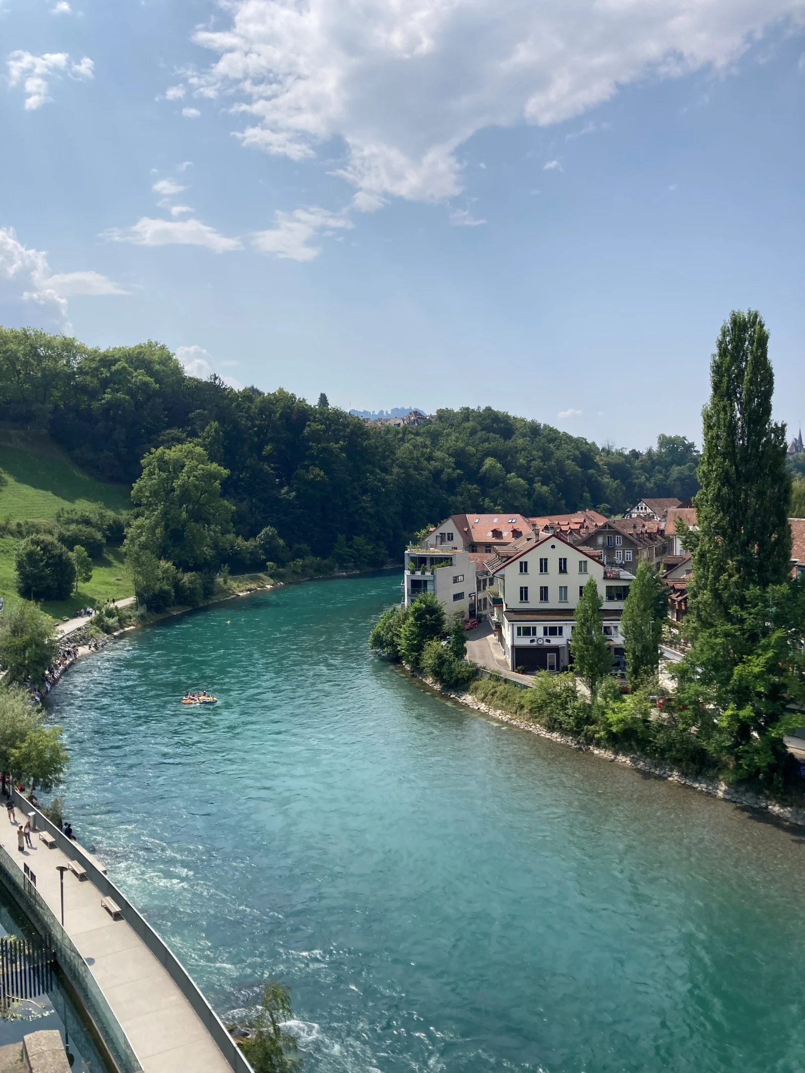 Tillsammans såg vi Zytglogge-klocktornet, Albert Einsteins tidiga bostad från 1900-talets början, välvda arkader, rikt dekorerade fontäner och kullerstensavenyer som myllrade av såväl historie- och kulturintresserade turister som sommarglada invånare på väg ner till Aare – floden som omringar staden i tre väderstreck – för ett dopp i sommarvärmen.De flöt förbi oss som lyckliga korkar i Aares strömmar, för att sedan kliva upp en bit längre bort och soltorka i en frodig skogsdunge, på en solskensbadande klippavsats eller i skuggan av en flera hundra år gammal bro. Jag säger bara: tänk om Göteborgs vallgrav hade varit lika ren. Då hade våra somrar sett rätt annorlunda ut…