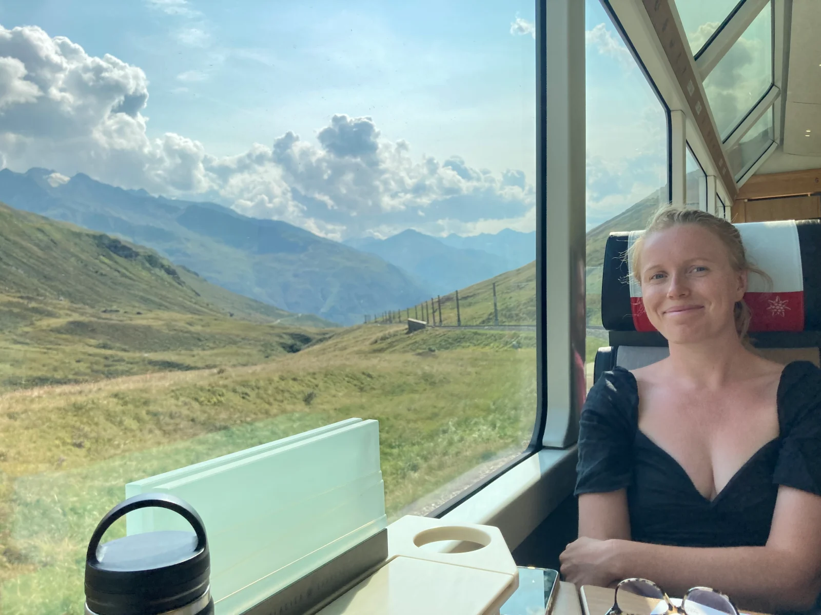 Efter en sista schweizisk frukost klev vi ombord tåget som under fyra timmar skulle ta oss genom några av världens mest spektakulära tågvyer. Glaciärexpressen. Resans absoluta höjdpunkt. För den som väntat på något gott väntar aldrig… ja, ni kan resten. Och mycket väl stämde det!För Glaciärexpressen levererade från första till sista minut, och levde verkligen upp till min förväntan när vi passerade alla gröna dalar, vitklädda berg, medeltida byar, glittrande alpsjöar och lantliga gårdar, omringade av förmodligen världens lyckligaste kor, hästar och får.