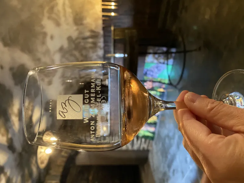 Dag 3, och dags för veckans första vinprovning på Weingut Anton Zimmerman. Som vinentusiast hade jag såklart kollat upp vingårdarna innan jag reste, och gissa om jag var exalterad? Hmn, en underdrift helt klart. Tyskland är ett vinland som man förknippar med odlingar av Riesling-druvan, men även Pinot Noir eller Spätburgunder - som det heter på tyska. Såväl som andra druvsorter, t ex Elbling & Grauburgunder. På Anton Zimmerman välkomnades vi med iskall rosé av Pinot Noir i 27 graders värme. DEN känslan! Att dricka vinet från bergen runt om oss var en upplevelse som motsvarade alla mina förväntningar! Sååå otroligt gott och lyxigt! Vinkällarens stenbeklädda väggar och runda bord med stolar bjöd verkligen in till en vinprovning som hette duga. Vi köpte med oss 6 flaskor… Resten av den här dagen spenderade vi i byn med lunch, middag och strosande i sagostaden.