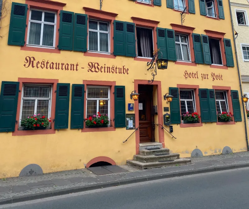 Vi checkade in på Zur Post Hotel, ett gult gammalt hus med anor från 1800-talet. När Magnus öppnade fönstret i badrummet kände jag mig faktiskt som vilken Disney-prinsessa som helst. Den vyn! Grönska, vinrankor och pastellfärgade hus med schiffertak så långt ögat når. Magi!