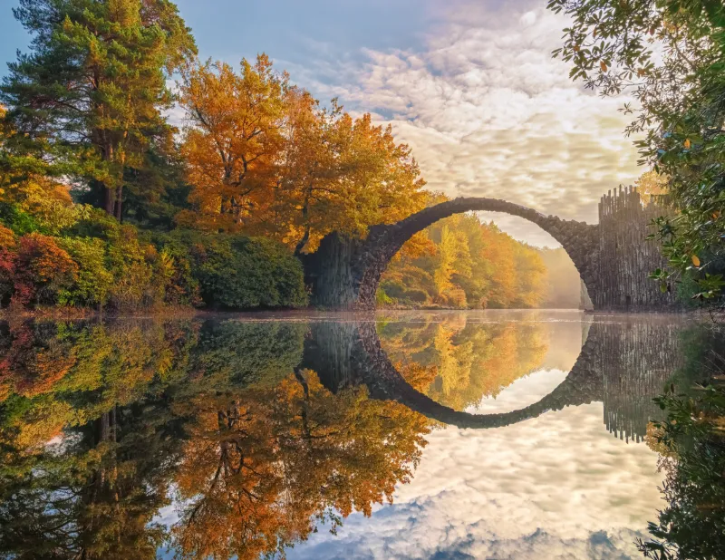 I en park i östra Tyskland nära polska gränsen ligger Rakotzbrücke, ofta kallad Djävulsbron. Den byggdes på 1860-talet, och det speciella är att den aldrig byggdes för trafik.Bron skapades enbart för estetik. När bron speglar sig i vattnet bildas en perfekt cirkel, vilket ger den nästan övernaturliga utseendet som inspirerat dess namn.